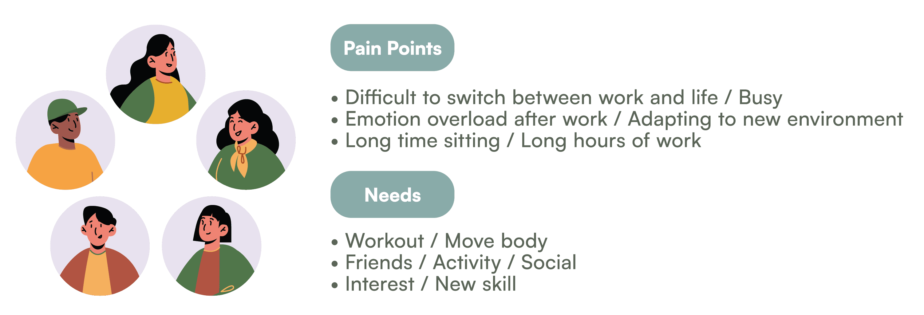 To validate our assumnption. We organized five individuals who have work experience for interview. We organize some insights from them: